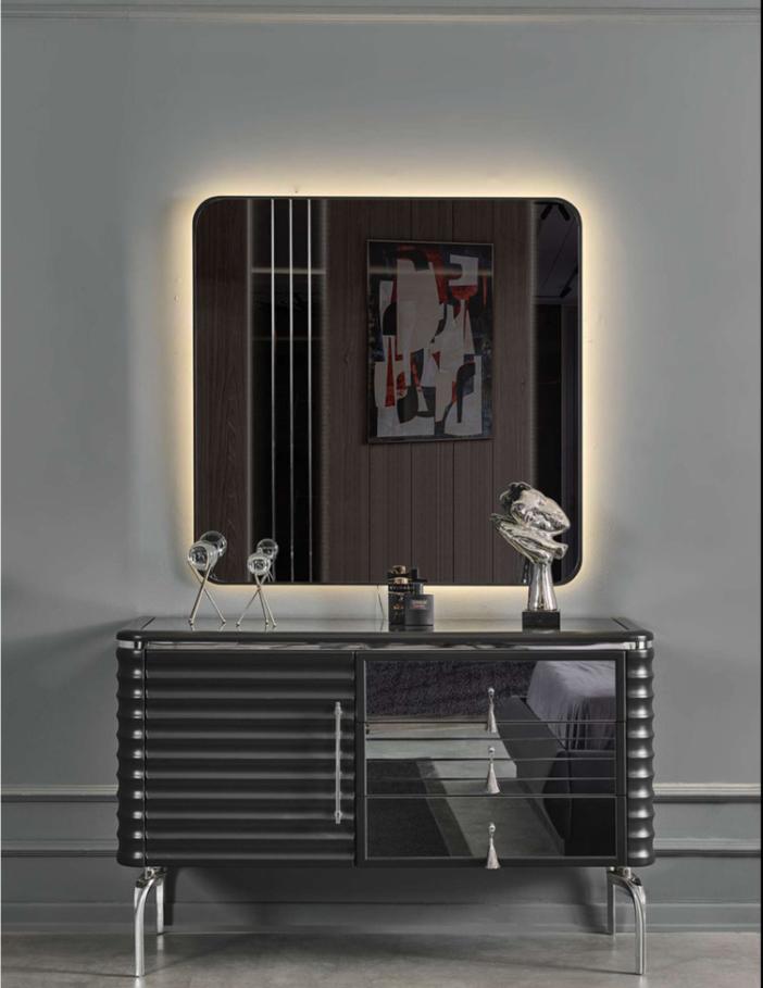 Schwarzes Schlafzimmer Set Designer Kommode mit LED-Spiegel Garnitur