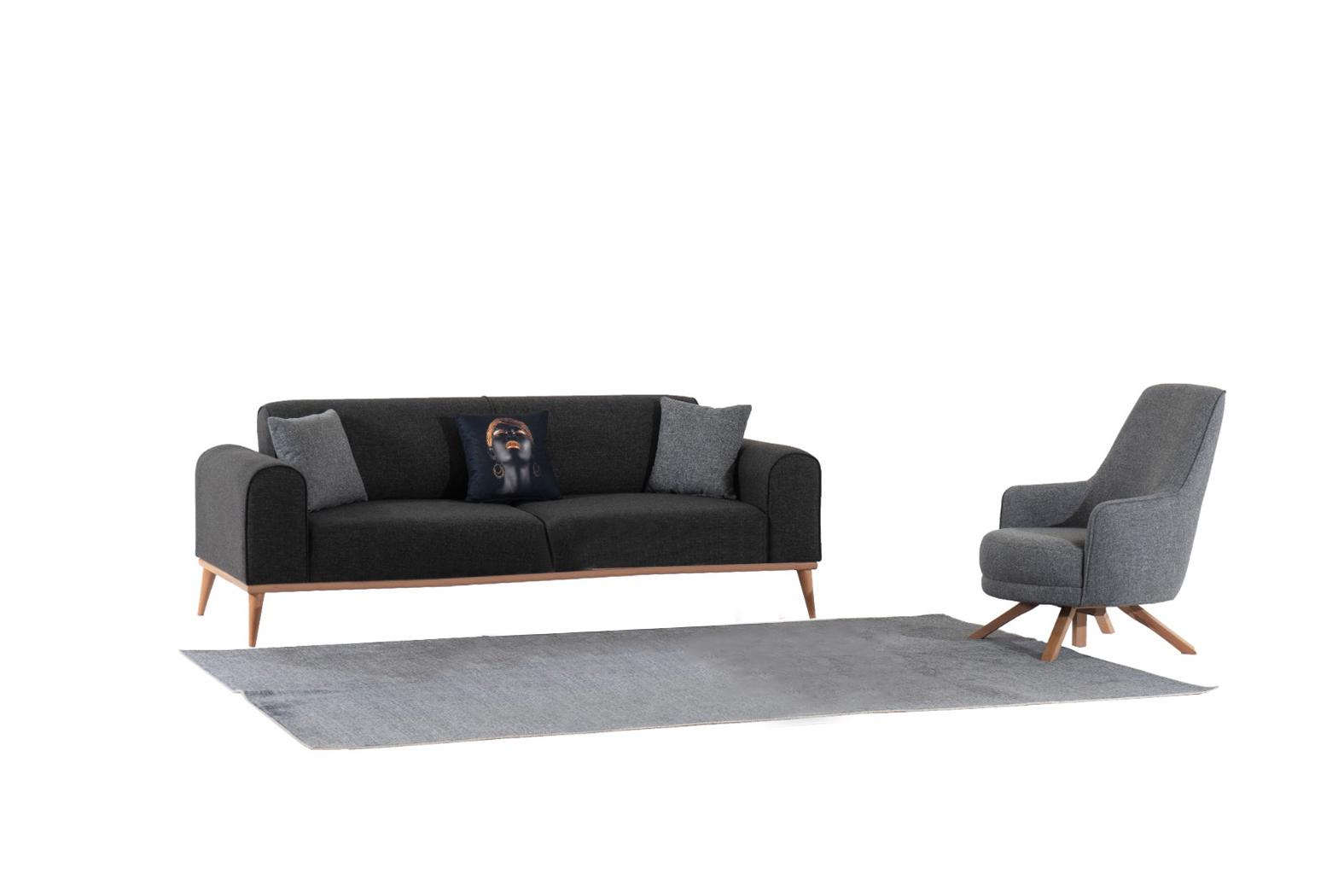 Entdecken Sie unser exklusives Wohnzimmer-Set bestehend aus einem geräumigen 3-Sitzer Sofa und einem bequemen Sessel, die Ihre Wohnräume in neuem Glanz erstrahlen lassen. Das Sofa hat Maße von ca. 224 x 90 x 83 cm, während der Sessel ca. 75 x 75 x 97 cm groß ist. Beide Möbelstücke bieten eine Sitzhöhe von ca. 42 cm und eine Sitztiefe von ca. 64 cm für maximalen Komfort. Hergestellt aus hochwertigem Holz und Textil in einer eleganten Farbe, bietet dieses Set nicht nur ein stilvolles Design, sondern auch eine langlebige Qualität. Perfekt für gemütliche Abende alleine oder mit der Familie. Erweitern Sie Ihre Einrichtung mit diesem exklusiven Set von XL Moebel und schaffen Sie eine Wohlfühloase in Ihrem Zuhause. Gönnen Sie sich Luxus und Komfort - jetzt bestellen!