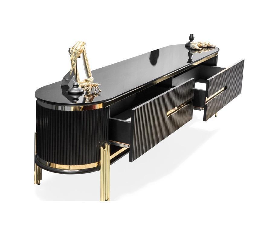 Modernes Lowboard Luxus RTV TV-Ständer Wohnzimmermöbel Schwarz Gold
