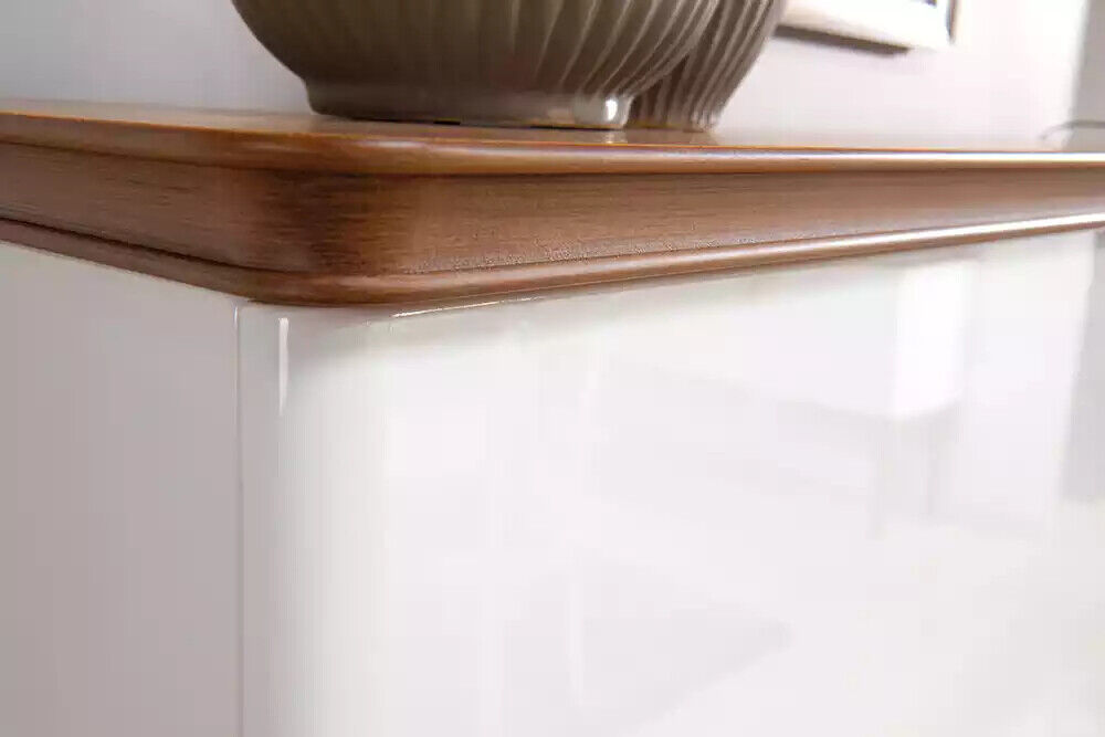 Rückwand & Einlegeböden: MDF (Mittledichte Holzfaserplatte), funiert & lackiert