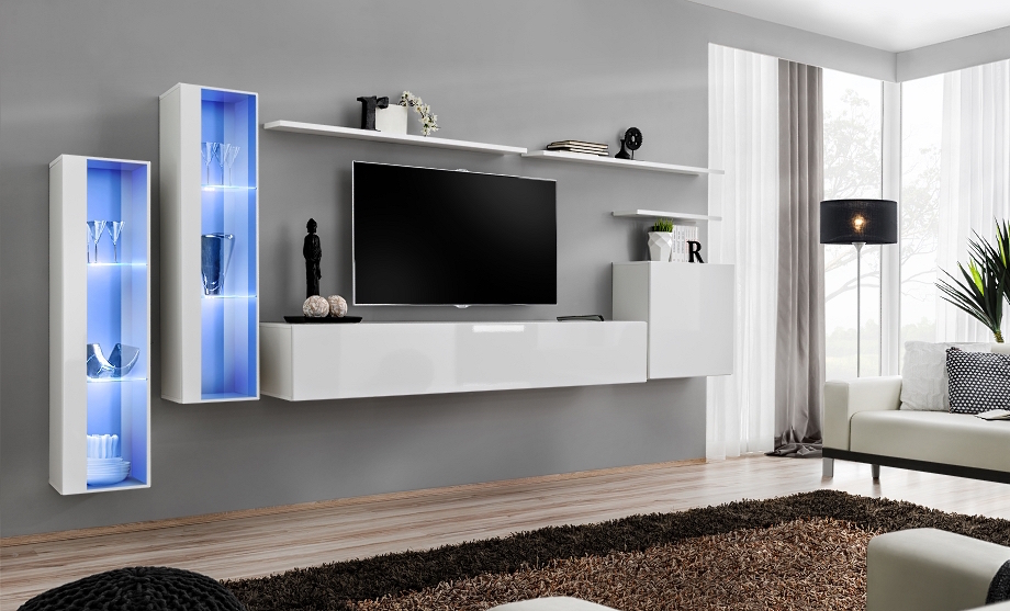 Weiß Komplett Wohnwand TV-Ständer Design Wohnzimmer Luxus Schrank Wandschrank