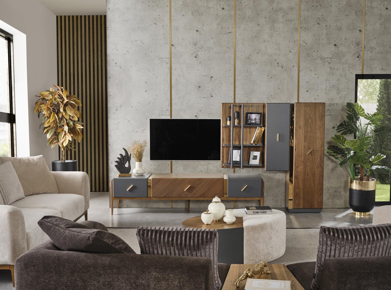 Wohnwand TV-Ständer Bücherregal Hangeschrank Schrank Moderne neu