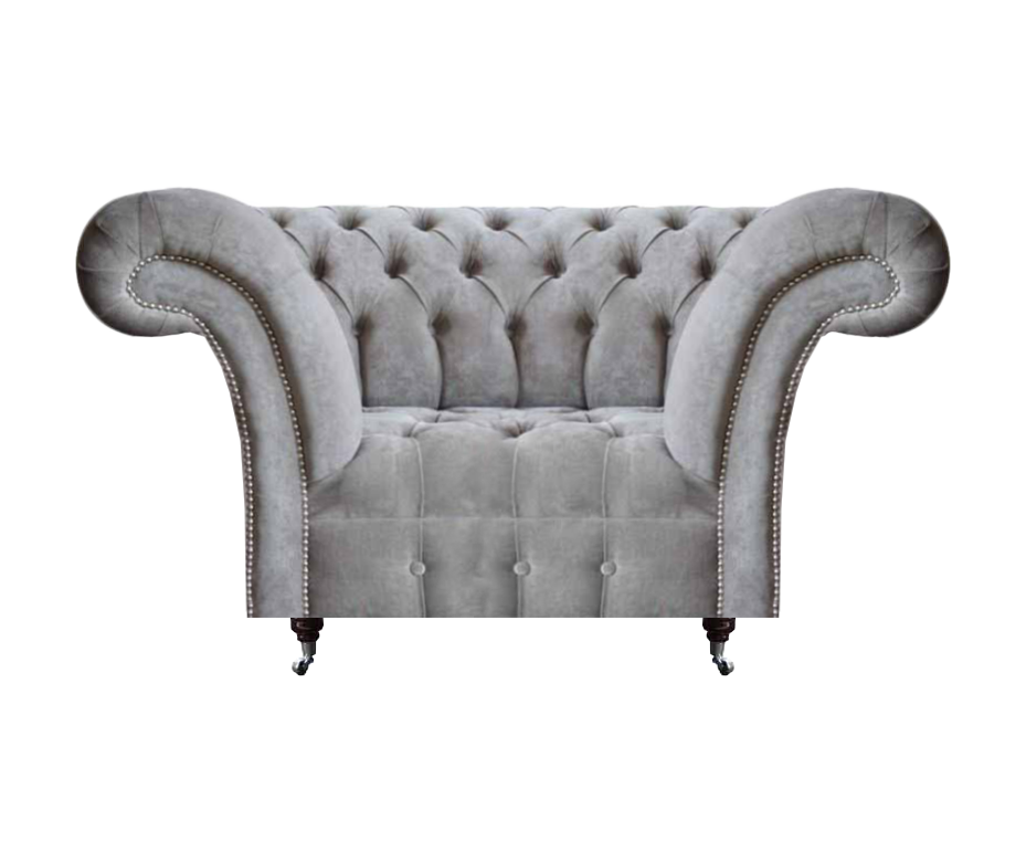 Der luxuriöse Chesterfield Polstersessel für das Wohnzimmer, Artikel Nr. EAN: 4067282730977, bietet zeitlosen Stil und höchsten Komfort. Mit Abmessungen von ca. 130 cm Länge, 90 cm Breite und 80 cm Höhe, einer Sitzhöhe von ca. 42 cm und einer Sitztiefe von ca. 52 cm, fügt sich dieser Sessel perfekt in jedes moderne Wohnzimmer ein. Zusätzlich sind im Shop folgende Optionen erhältlich: 4-Sitzer (ca. 275 cm x 90 cm x 80 cm), 3-Sitzer (ca. 220 cm x 90 cm x 80 cm) und 2-Sitzer (ca. 180 cm x 90 cm x 80 cm). Für zusätzliche 549 Euro ist der Sessel auch in 100% Vollleder erhältlich. Die Farbe des Sessels ist Grau. Weitere Farboptionen finden Sie unter dem Reiter "Farben". Das Material des Sessels ist Premium Kunstleder. Weitere Materialoptionen sind ebenfalls unter dem Reiter "Farben" verfügbar: Gruppe 1: Premium Kunstleder (ohne Aufpreis), Gruppe 2: Premium Echtleder (mit Aufpreis)***, Gruppe 3: Premium Samt Stoff (ohne Aufpreis) und Gruppe 4: Magic Home (Fleckenabweisender Stoff) (mit Aufpreis). ***Das Premium Echtleder ist italienisches Rindsleder mit einer Narbenlederdicke von bis zu ca. 2,50 mm. Für eine besondere Note können Sie statt der Standardknöpfe Kristallsteine (+199,00 EUR) oder echte Swarovski Kristallsteine (+599,00 EUR) wählen. Der Sessel verfügt über ein Innengestell aus echtem Holz und einen Federkern für optimalen Sitzkomfort und Langlebigkeit. Dieser Polstersessel kombiniert hochwertige Materialien, exquisite Verarbeitung und klassisches Chesterfield-Design und wird zum Highlight in jedem Wohnraum.