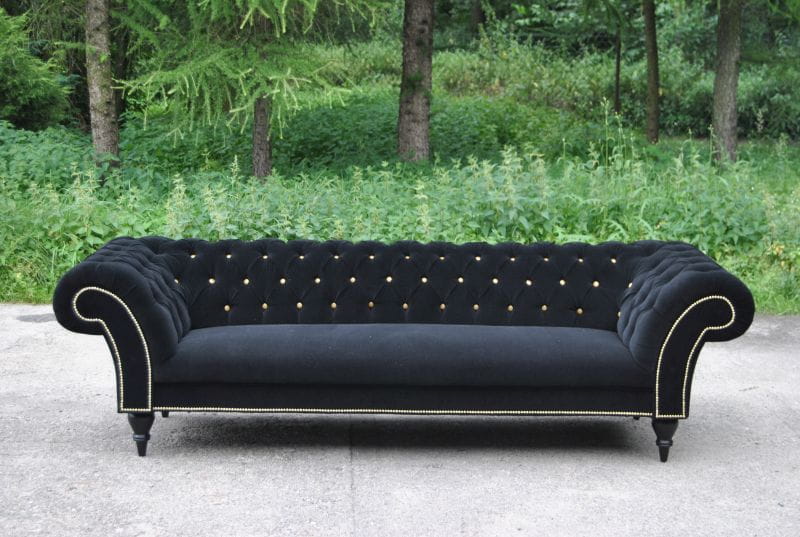 Stoff Design Couch Polster Textil Modern Sofa Chesterfield 3 Sitzer Schwarz