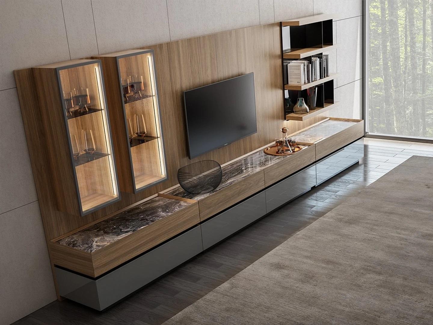 Modern Design Einrichtung Wohnwand Set TV-Ständer Wandregale Holzmöbel Neu