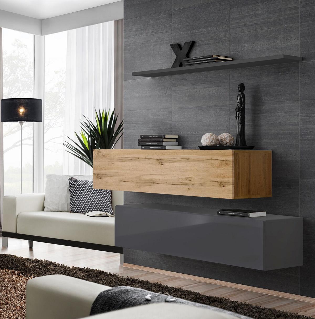 Entdecken Sie das elegante 3-teilige Wohnzimmer Wohnwand Set von XL Moebel! Mit dieser hochwertigen Gruppe aus Schrank, Regal und Möbeln aus Holz können Sie Ihrem Wohnzimmer einen neuen Glanz verleihen. Die Maße der Wohnwand betragen ca. 130 x 30 x 110 cm, während die beiden Wandschränke jeweils ca. 120 x 30 x 40 cm messen. Das moderne Wandregal ist ca. 120 x 20 x 1.8 cm groß. Die Farbe entspricht genau der Abbildung. Bringen Sie mit diesem stilvollen Möbel-Set Gemütlichkeit und Eleganz in Ihr Zuhause!